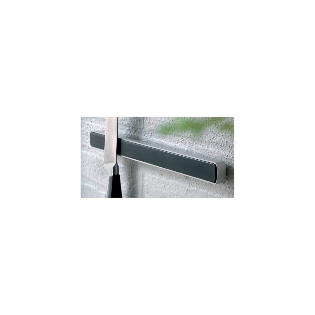 Elegante y fuerte imán para colgar los cuchillos de forma segura en su lugar designado.