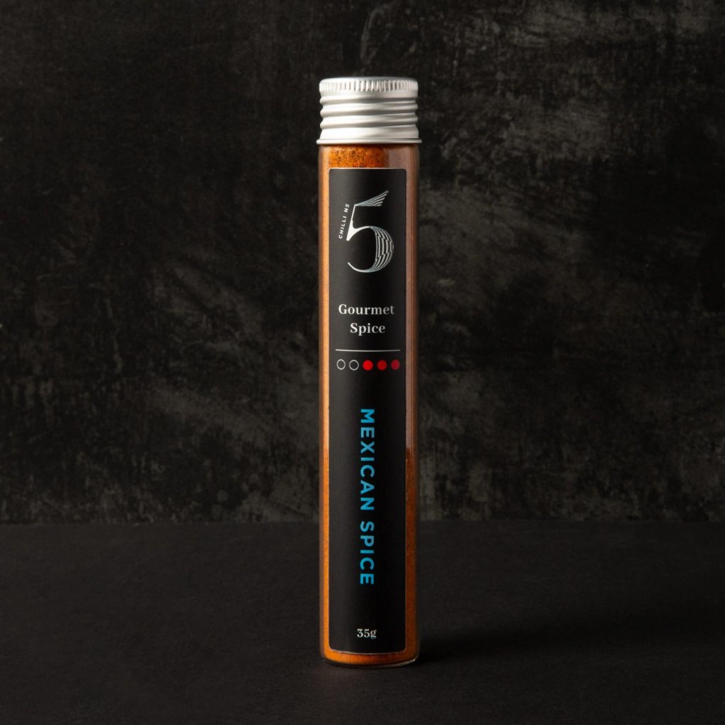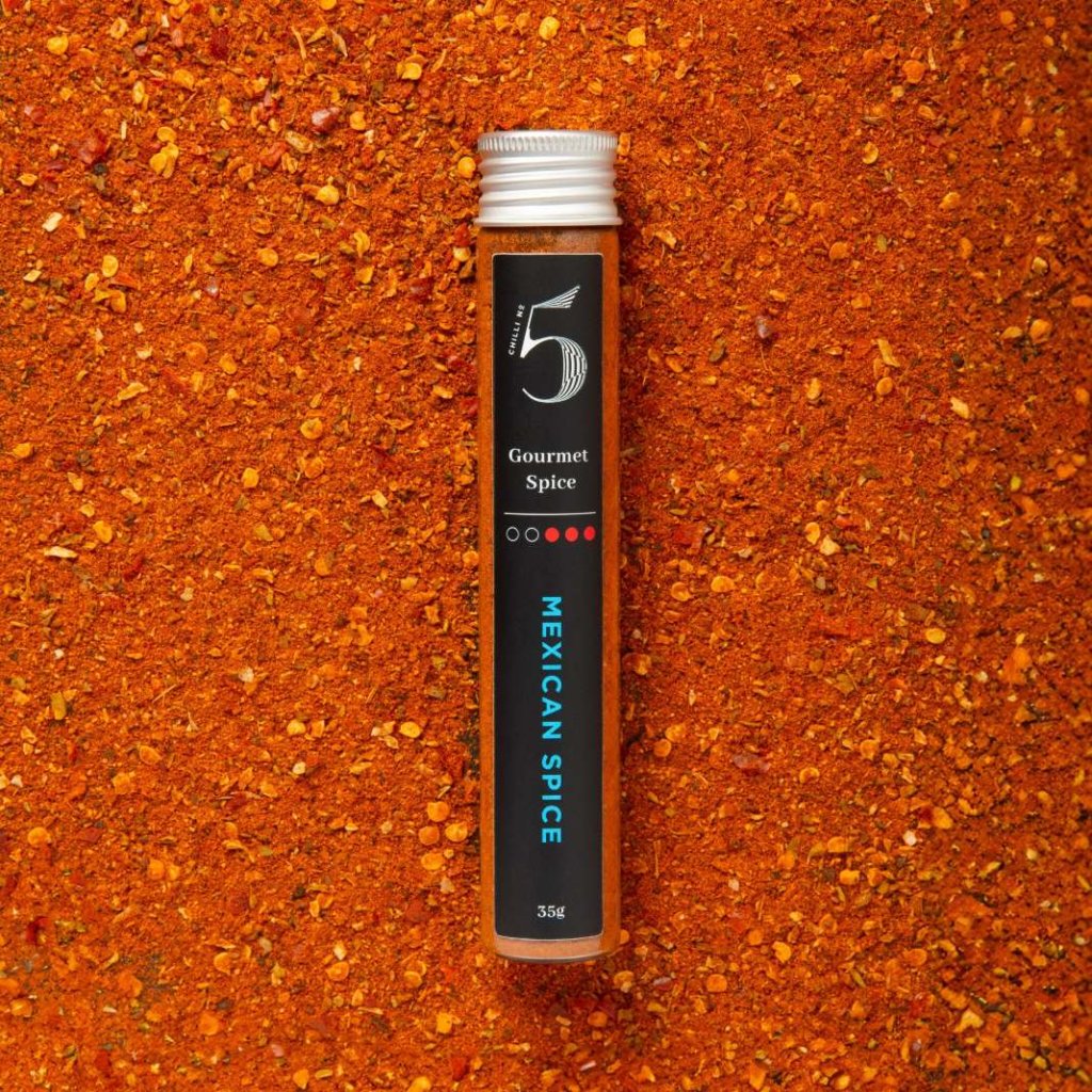 - MEXICAN SPICE de Chilli No5 es una mezcla de especias gourmet inspirada en la cocina tradicional mexicana, que es conocida por su distintivo sabor ahumado y picante.