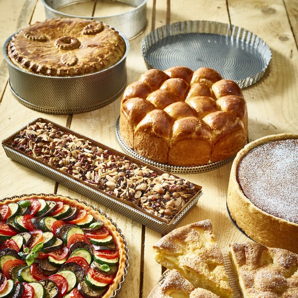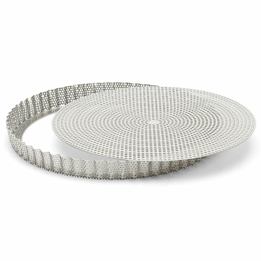 - el molde redondo para tartas de acero inoxidable perforado es ideal para preparar tartas dulces y saladas tanto en el ámbito doméstico como en el profesional
