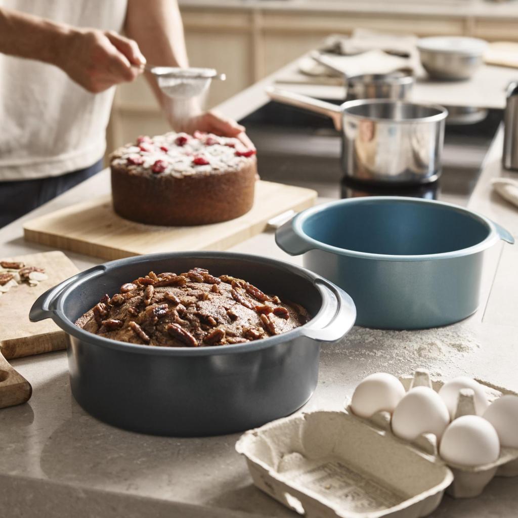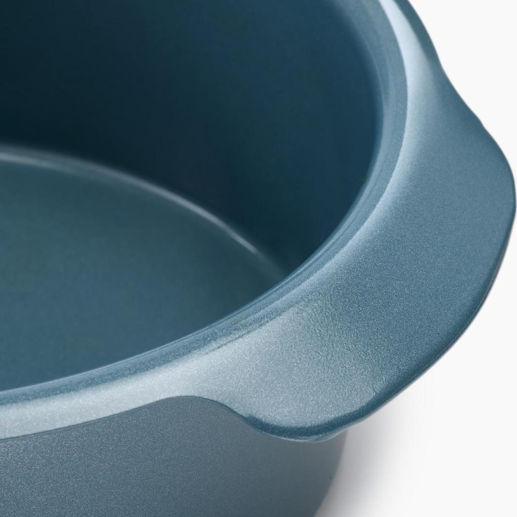 - El elegante acabado azul aporta un aspecto moderno a la cocina y añade alegría a cada horneado casero.