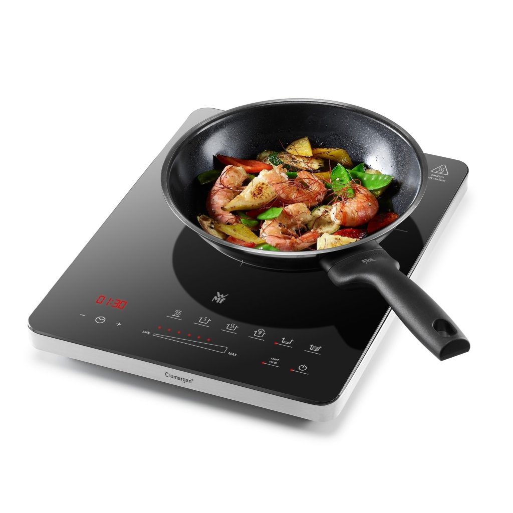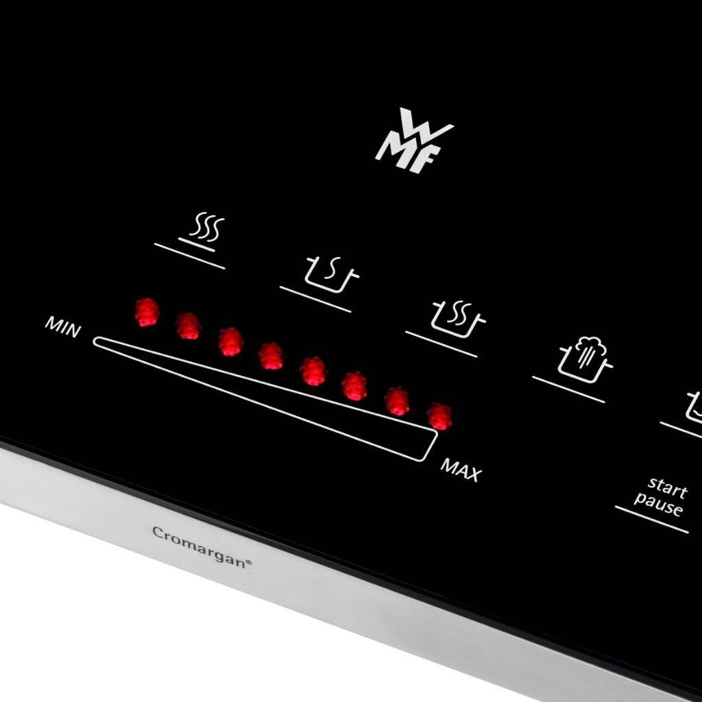 La cocina de inducción mono KULT X de la marca alemana WMF le ofrece otra forma de disfrutar de una cocina cómoda. Utilice la placa de inducción Mono como una extensión de su cocina para cocinar a lo grande en casa en la cocina, en un pequeño hogar individual y sobre la marcha. El panel de control táctil e intuitivo es fácil de manejar. Los modos preestablecidos y el temporizador son una ventaja. La placa de inducción detecta automáticamente el tamaño de la batería de cocina, lo que permite cocinar de forma perfectamente económica.