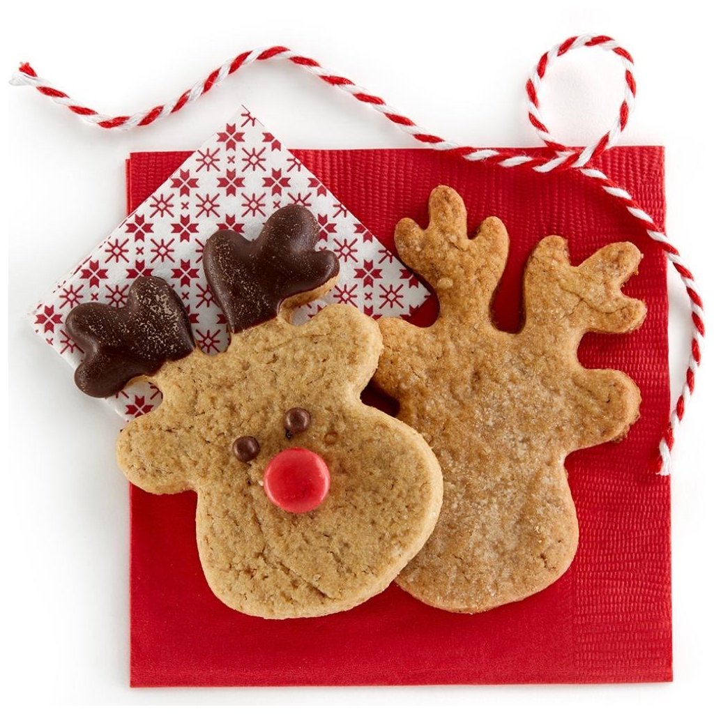 - 5 cortadores de galletas con diferentes formas navideñas (Papá Noel, reno, regalo, bastón de caramelo, campana)