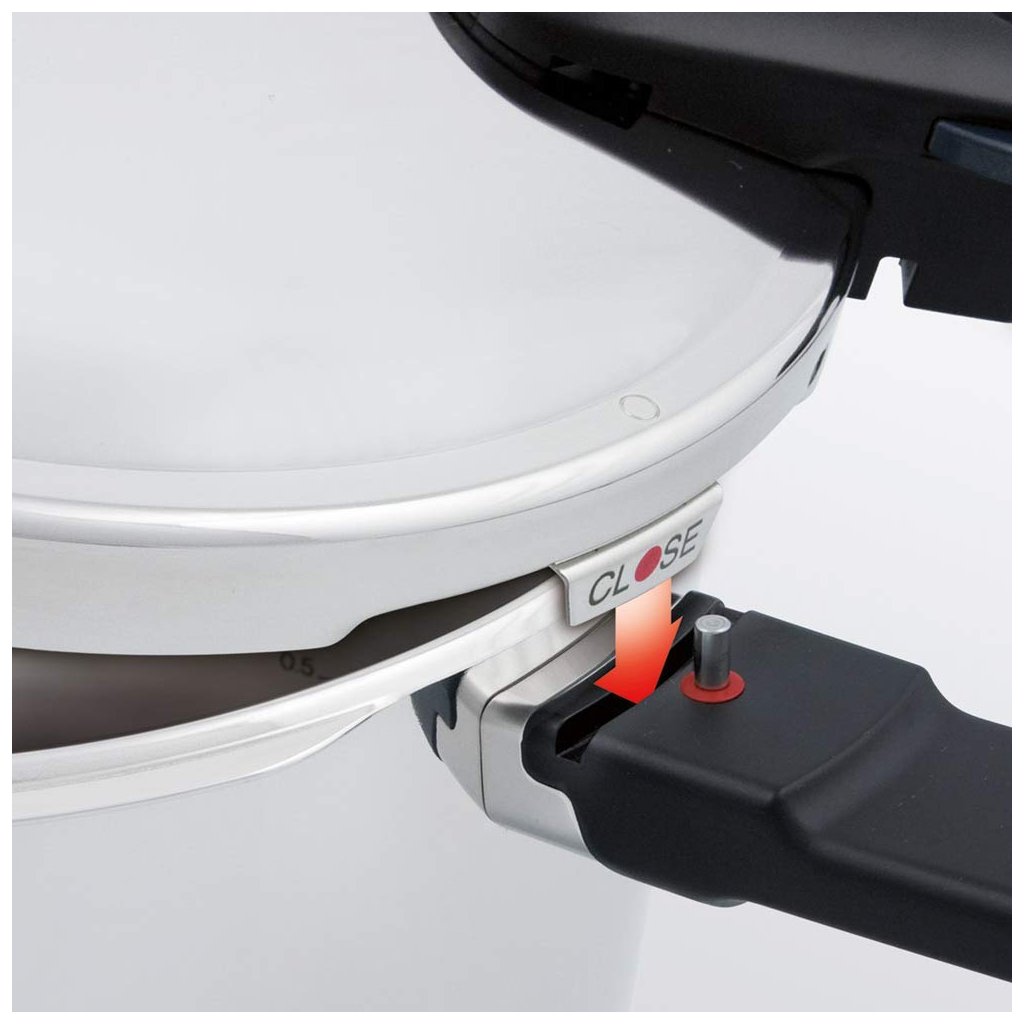 - indicador mecánico de presión para una apertura segura, que está codificado por colores según la presión dentro de la olla
