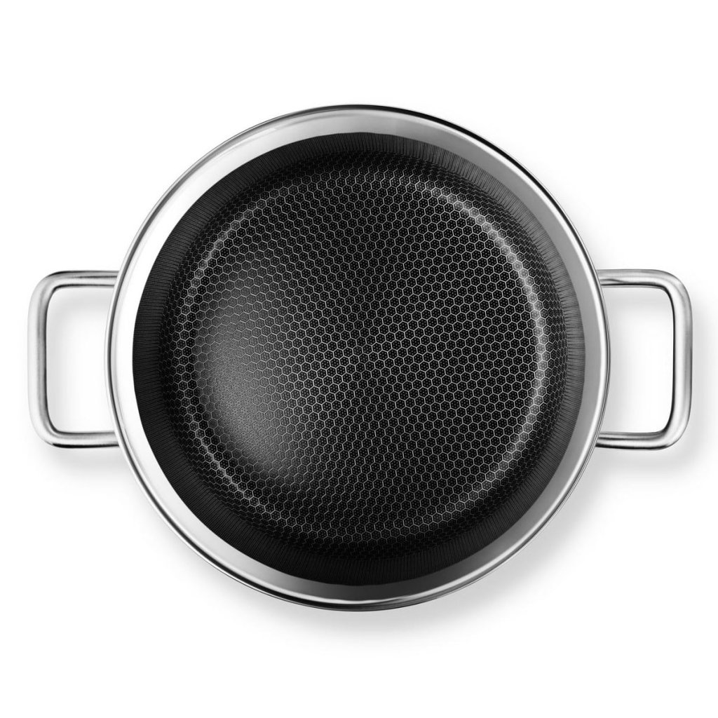 - la construcción en sándwich de varias capas garantiza un calentamiento rápido y una distribución uniforme del calor por toda la olla