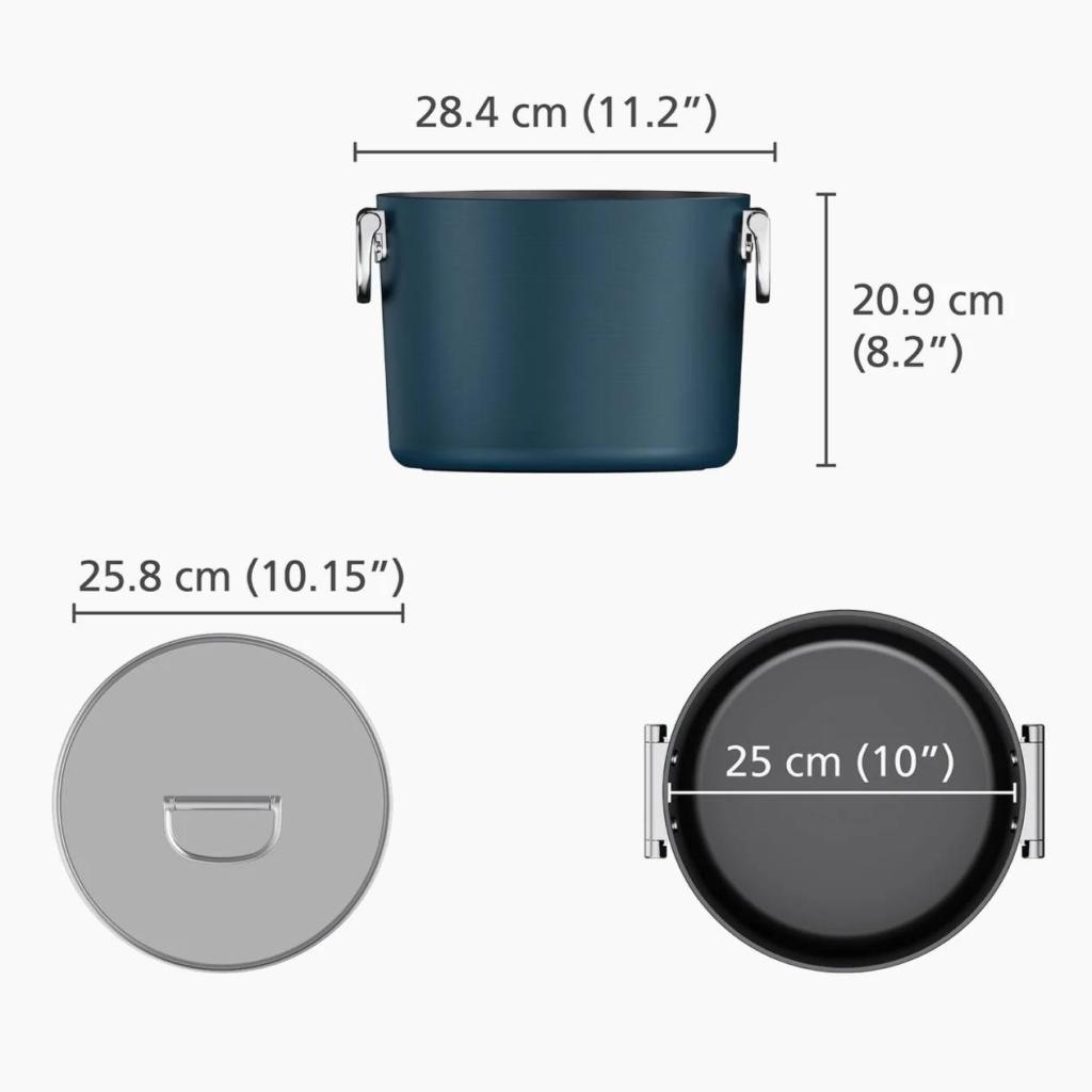 - La Olla SPACE de 25 cm de diámetro con tapa es ideal para preparar caldos, sopas, salsas e incluso grandes porciones de pasta o legumbres.