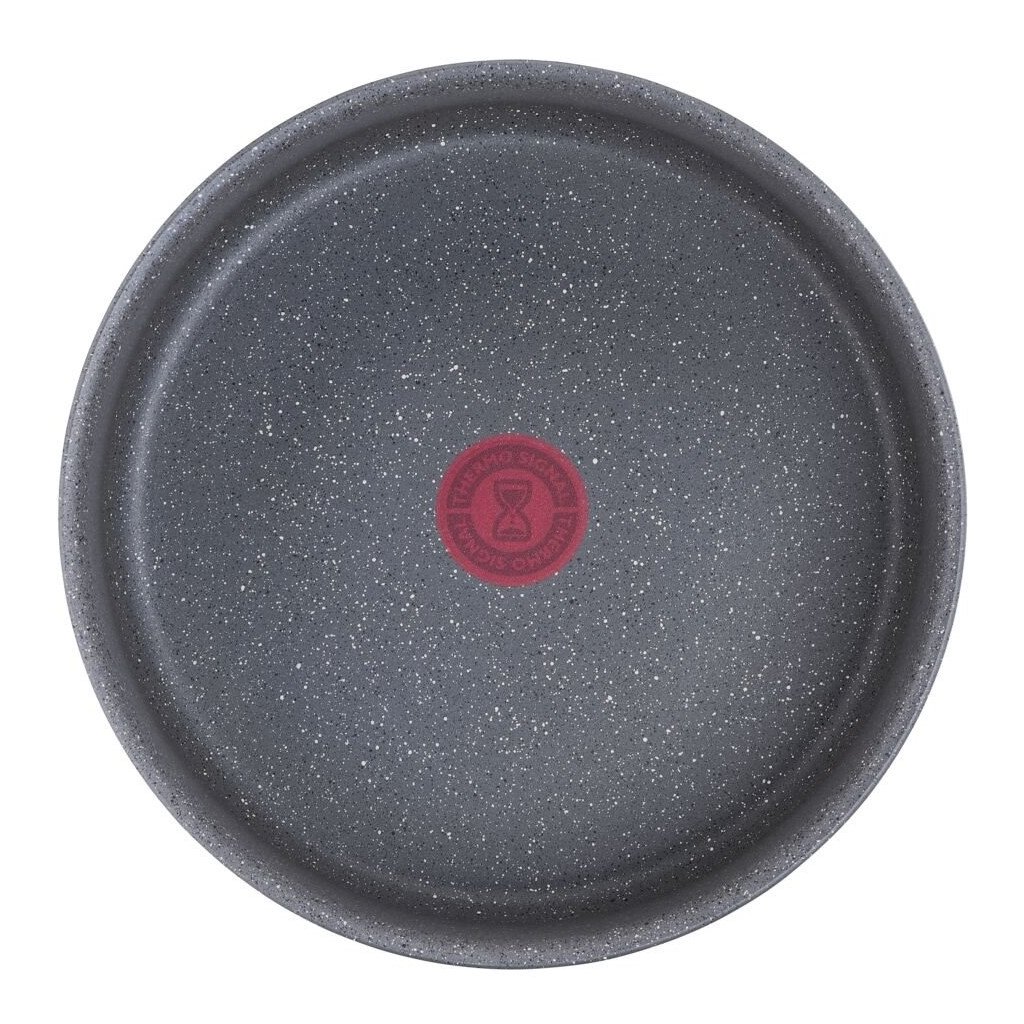 - la superficie antiadherente Mineralia+, enriquecida con silicato cálcico mineral, es extremadamente duradera y proporciona un deslizamiento perfecto para freír con poca grasa (sin PFOA, cadmio ni plomo)