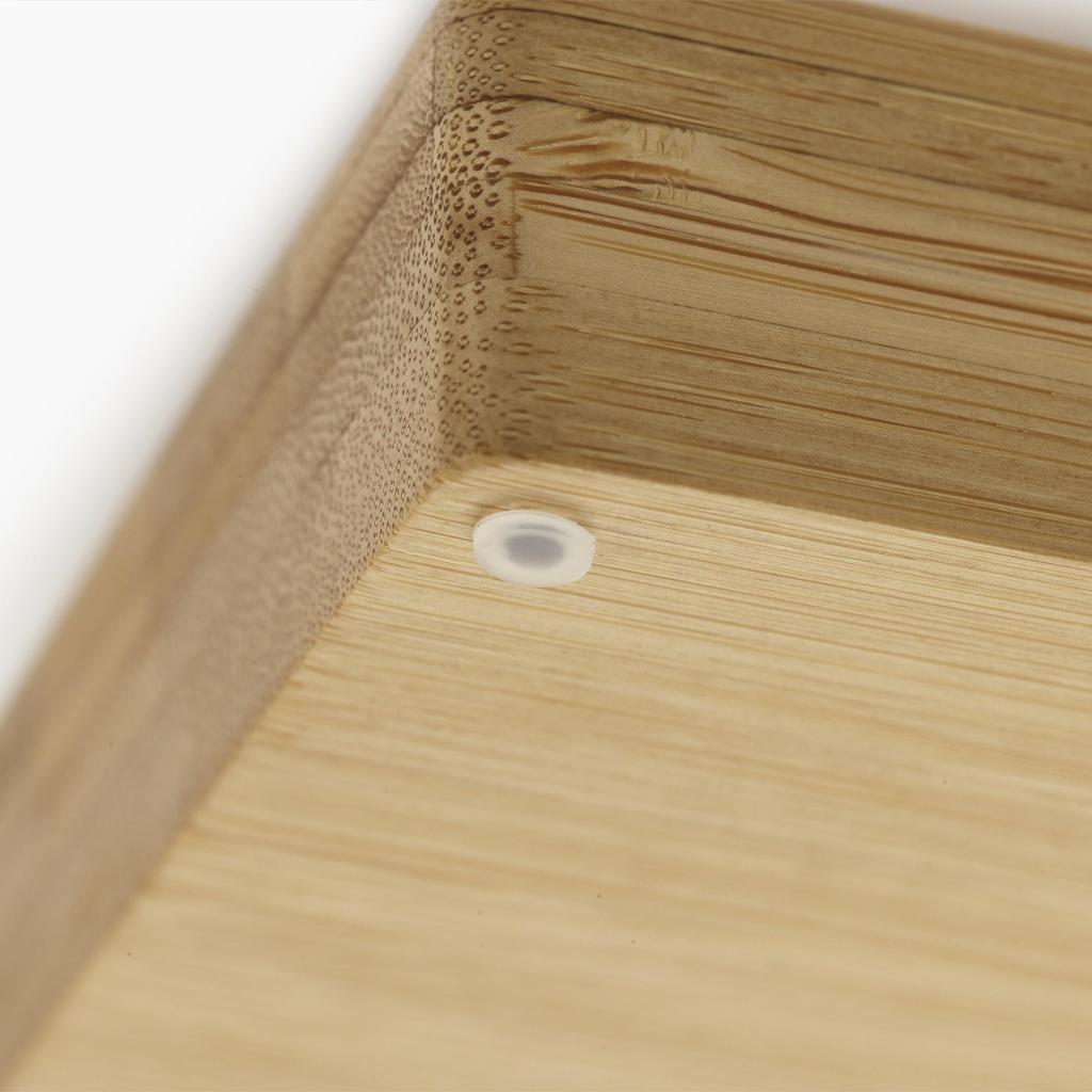 - El material natural de bambú confiere al organizador un aspecto elegante, a la vez que es resistente y duradero.