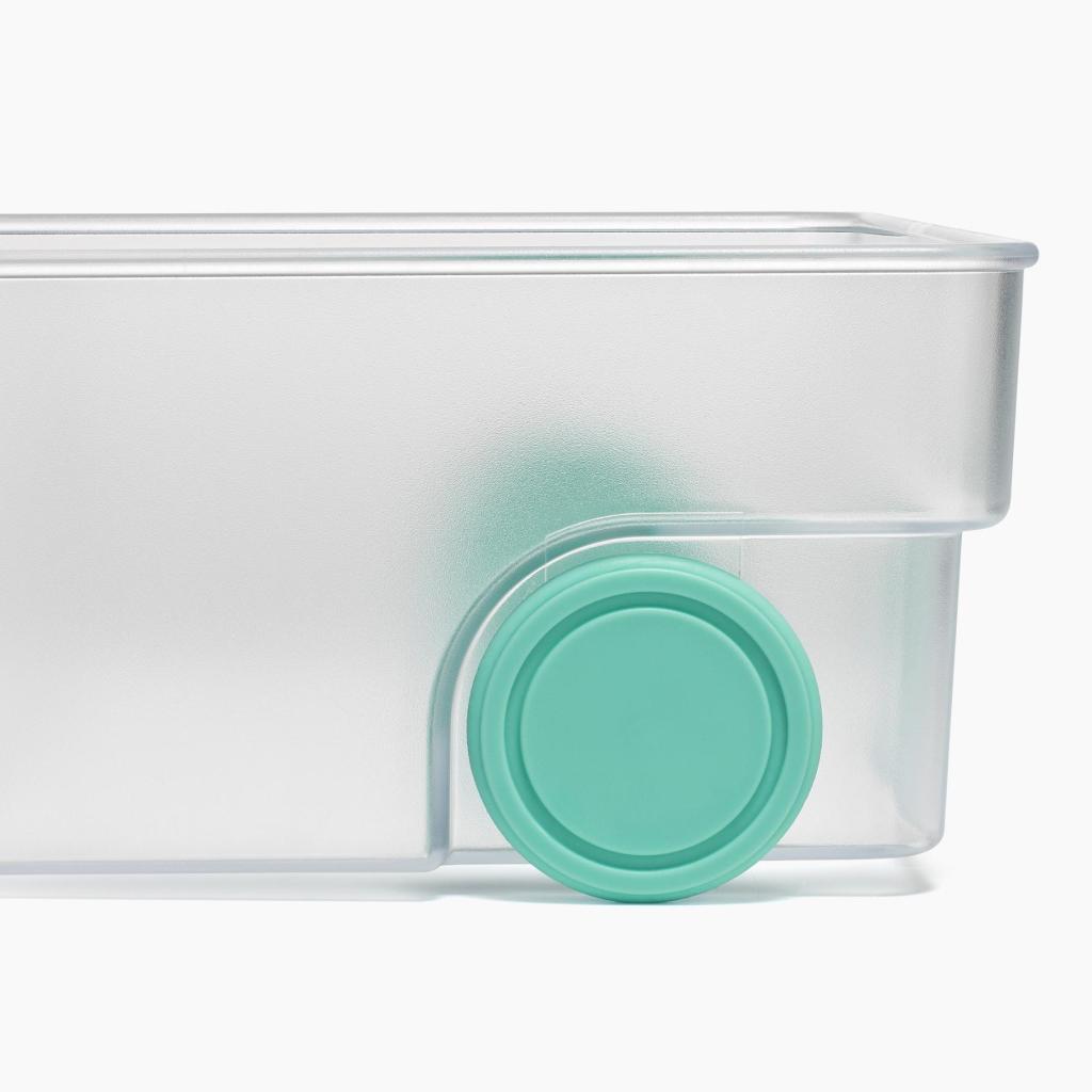 - Las ruedas integradas en la parte inferior permiten extraer suavemente la caja hacia afuera y garantizan un acceso cómodo a los alimentos almacenados.