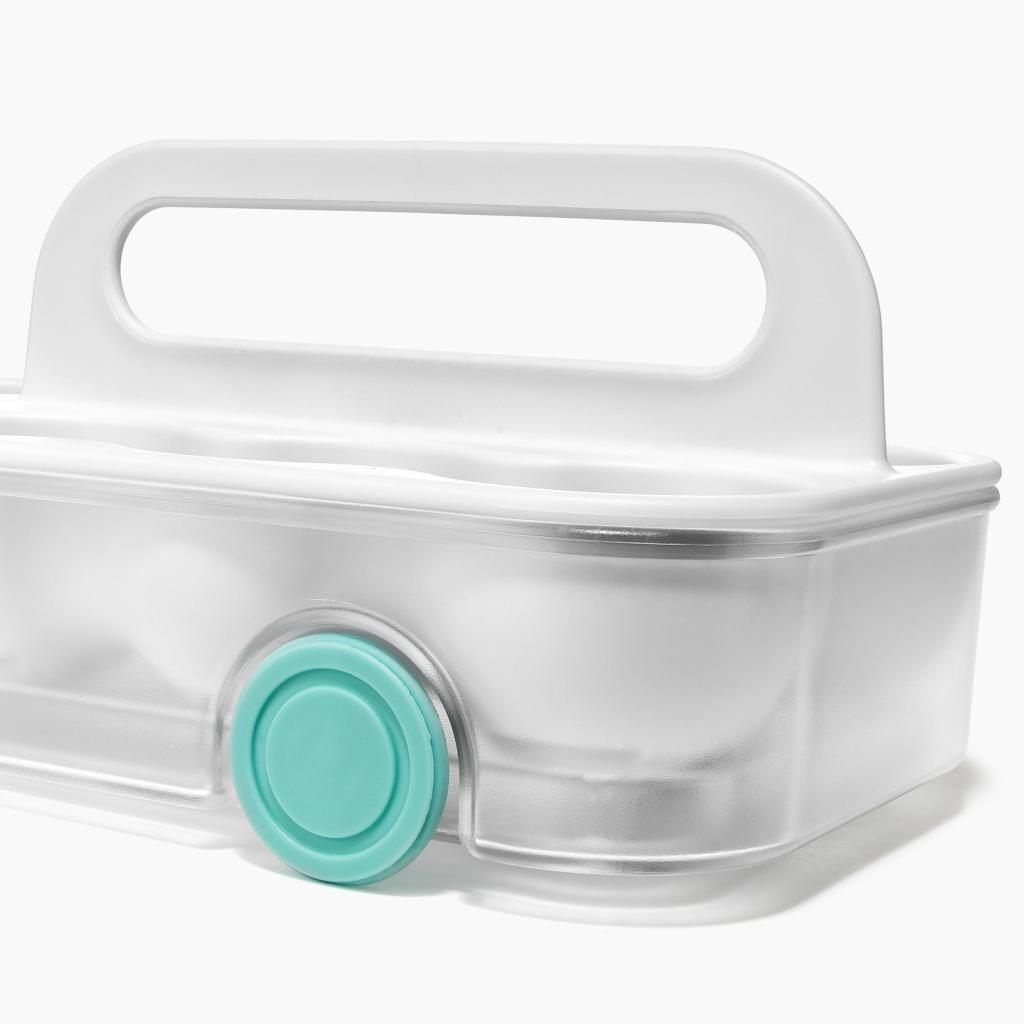 - El práctico asa permite extraer fácilmente todo el organizador del estante del frigorífico y acceder cómodamente a todos los huevos almacenados.