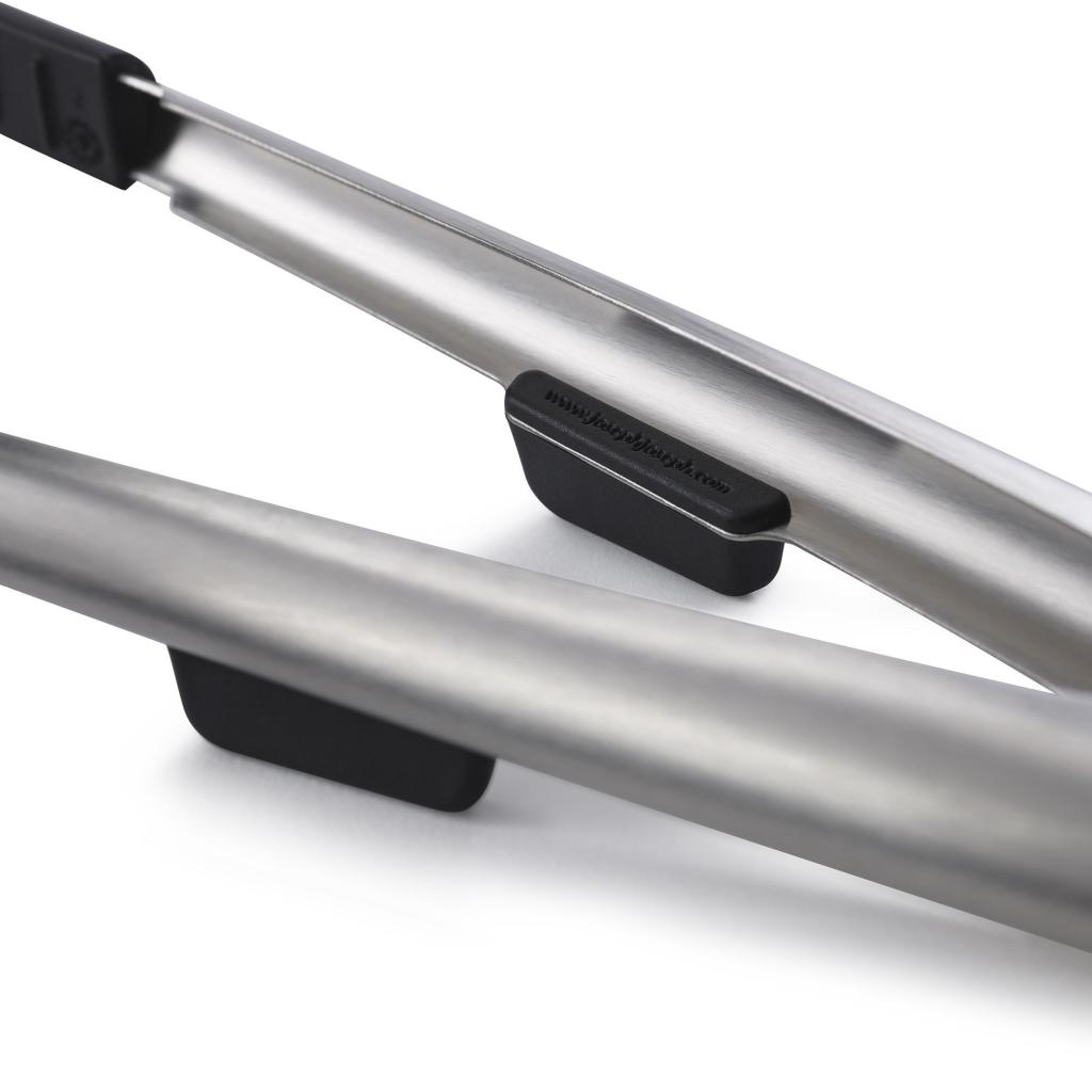 - Los soportes integrados garantizan que la parte de trabajo de las pinzas no toque la superficie de trabajo durante la cocción o el servicio.