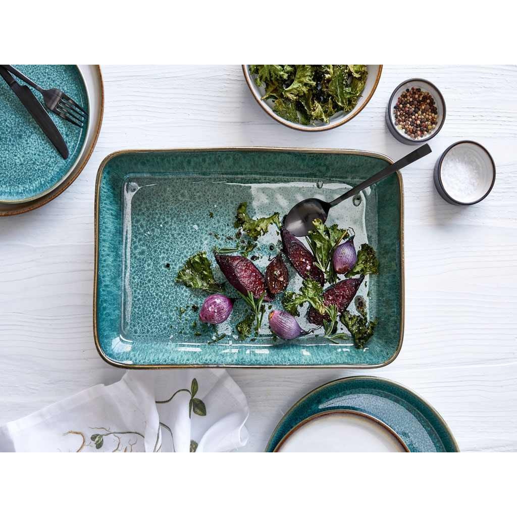 La bandeja de gres rectangular de Bitz te invita a cocinar algo delicioso. Es ideal para servir directamente del horno a la mesa. Presenta un esmalte de color brillante en el interior y un esmalte reactivo mate en el exterior. Se crea a mano, por lo que cada pieza es un original.
