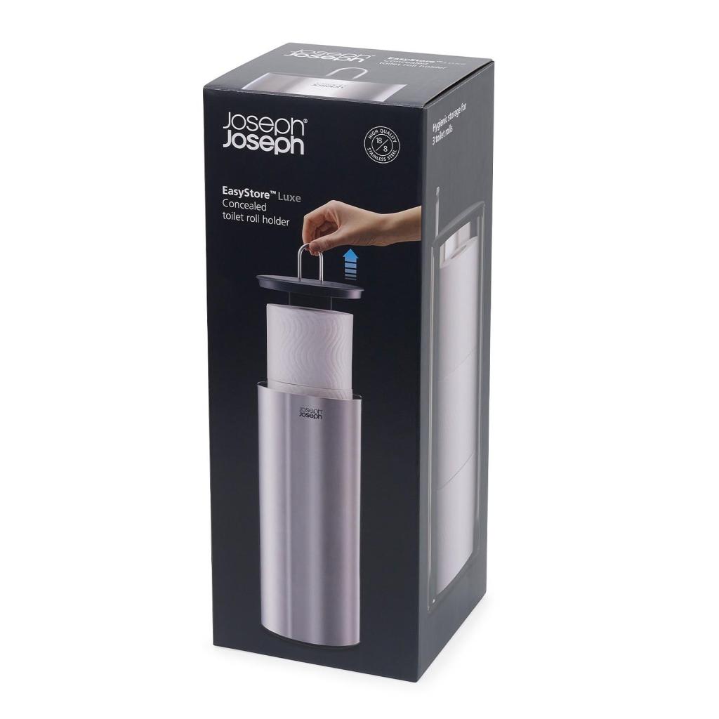 - El Portarrollos de repuesto Joseph Joseph EASYSTORE LUXE ofrece una solución elegante e higiénica para almacenar rollos en el baño y ayuda a mantener el espacio ordenado y visualmente limpio.