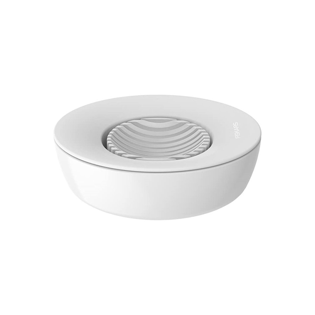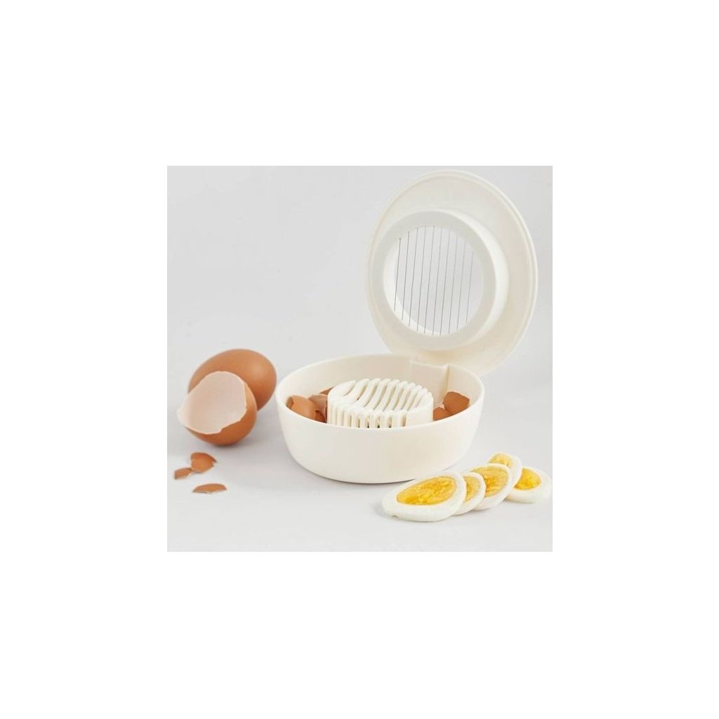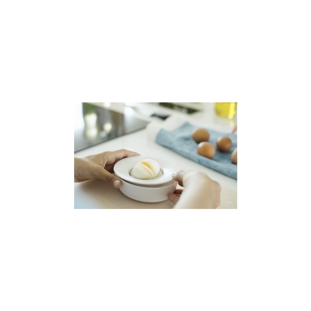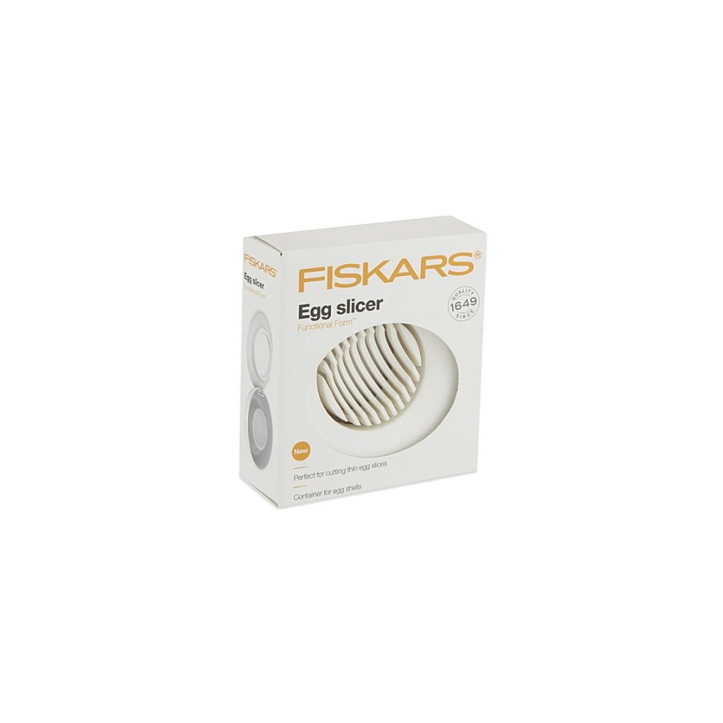 La cortadora de huevos Functional Form Fiskars con bol de cáscara integrado es ideal para cortar huevos en rodajas finas.
