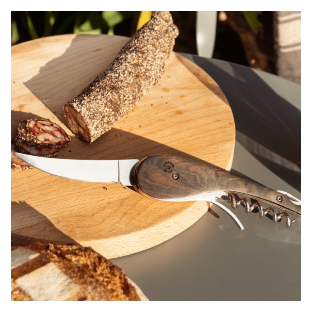 - el sacacorchos incluye un cortacápsulas, un abrebotellas y un cuchillo con el que podrá cortar pan, queso, salchichas o cualquier cosa que acompañe al vino
