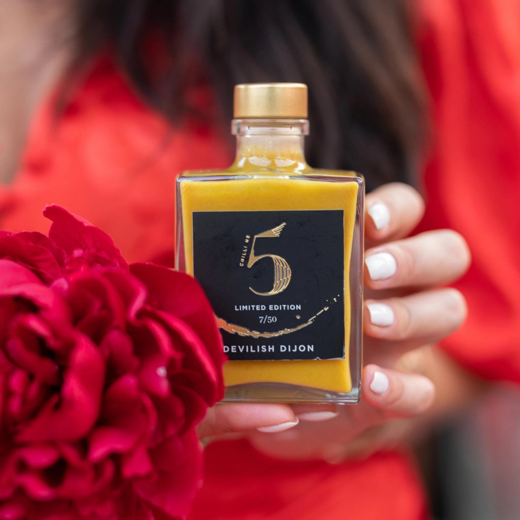 - Esta edición limitada DEVILISH DIJON de Chilli No5 es una distintiva salsa de mostaza picante que combina la tradicional mostaza de Dijon con una mezcla picante de chiles para una experiencia de sabor inigualable.
