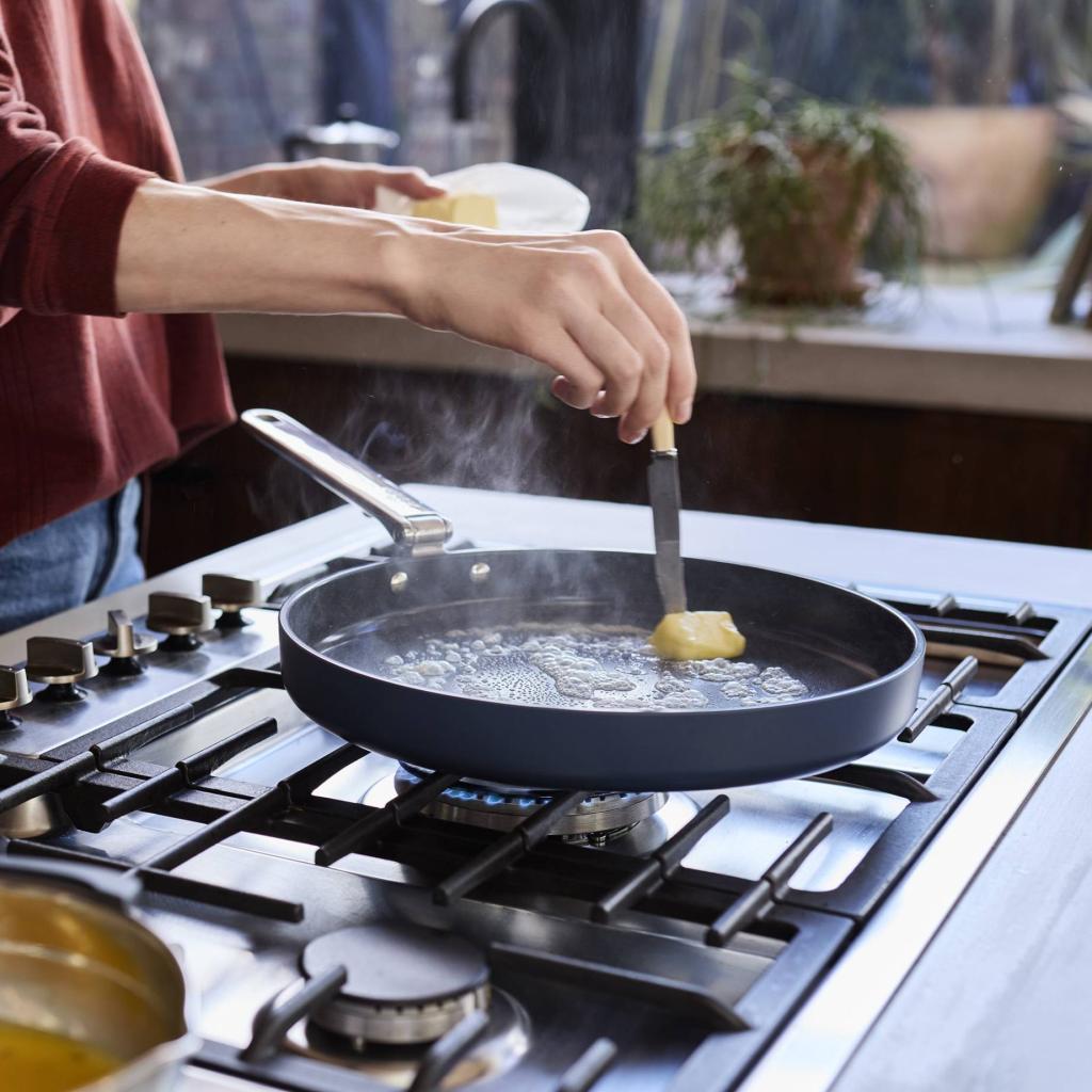 - La sartén es adecuada para todo tipo de cocinas y placas de cocción, incluida la inducción, por lo que se adapta fácilmente a cualquier tipo de cocina.
