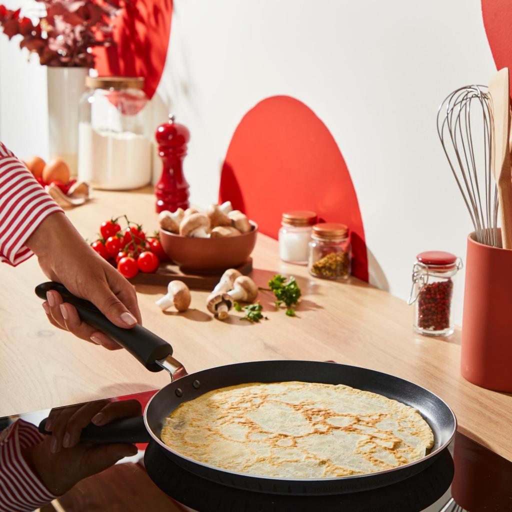 - Sartén para crepes Tefal H0573802 con un diámetro de 25 cm está diseñado para preparar fácilmente panqueques perfectamente finos y cocinados de manera uniforme para toda la familia.