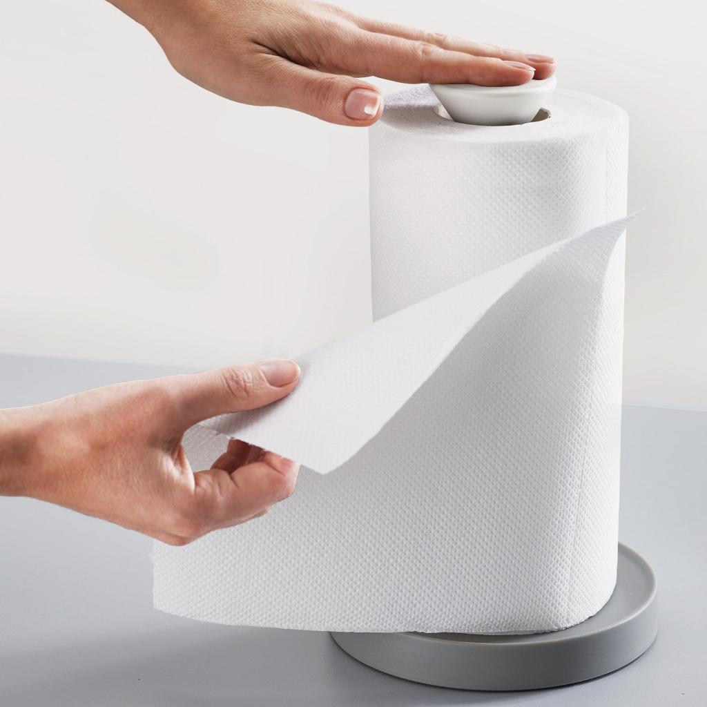 - La base estable se mantiene firme en la encimera y garantiza seguridad al manipularlo, incluso si solo necesita arrancar una toalla con una mano.