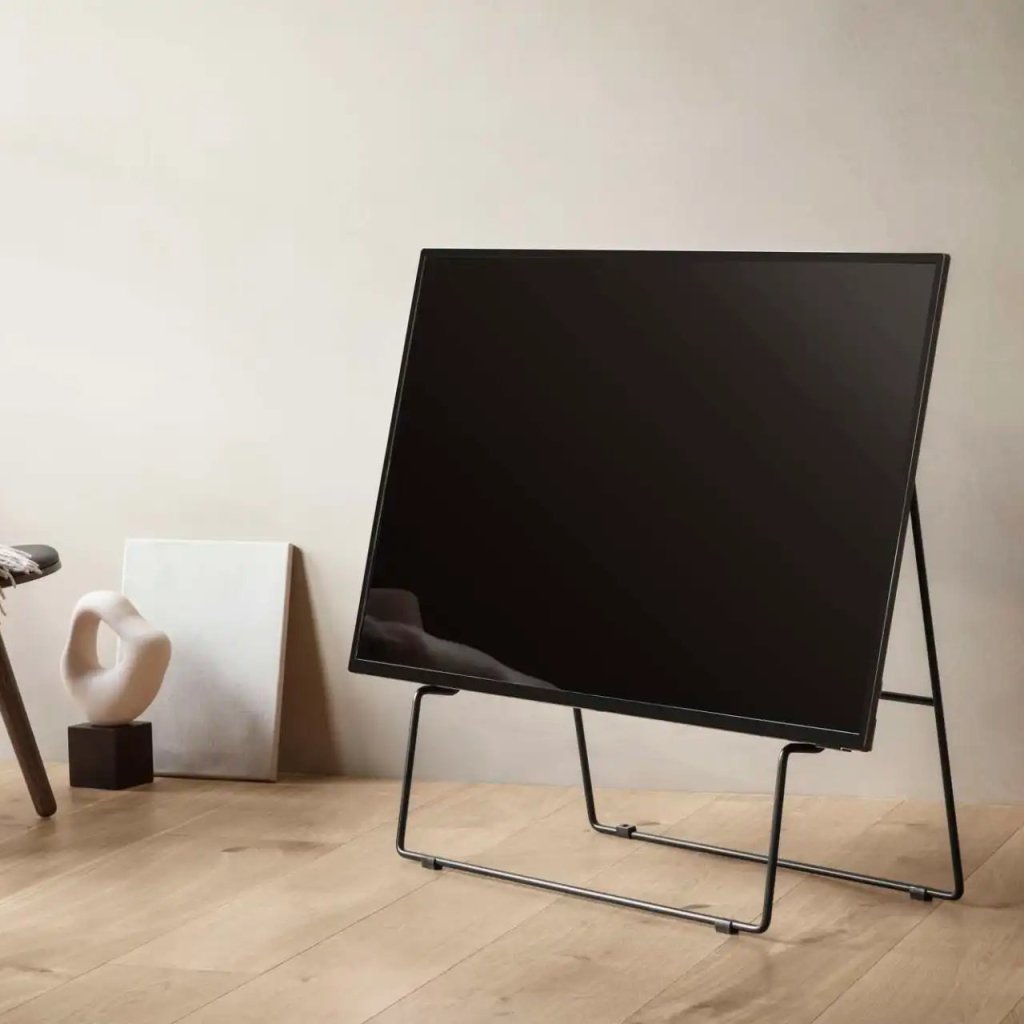 - el marco sencillo pero robusto facilita la instalación del televisor y lo sujeta firmemente con dos elegantes correas de cuero negro