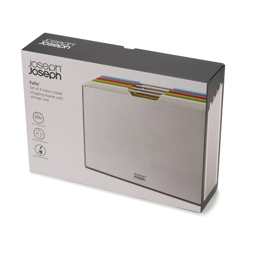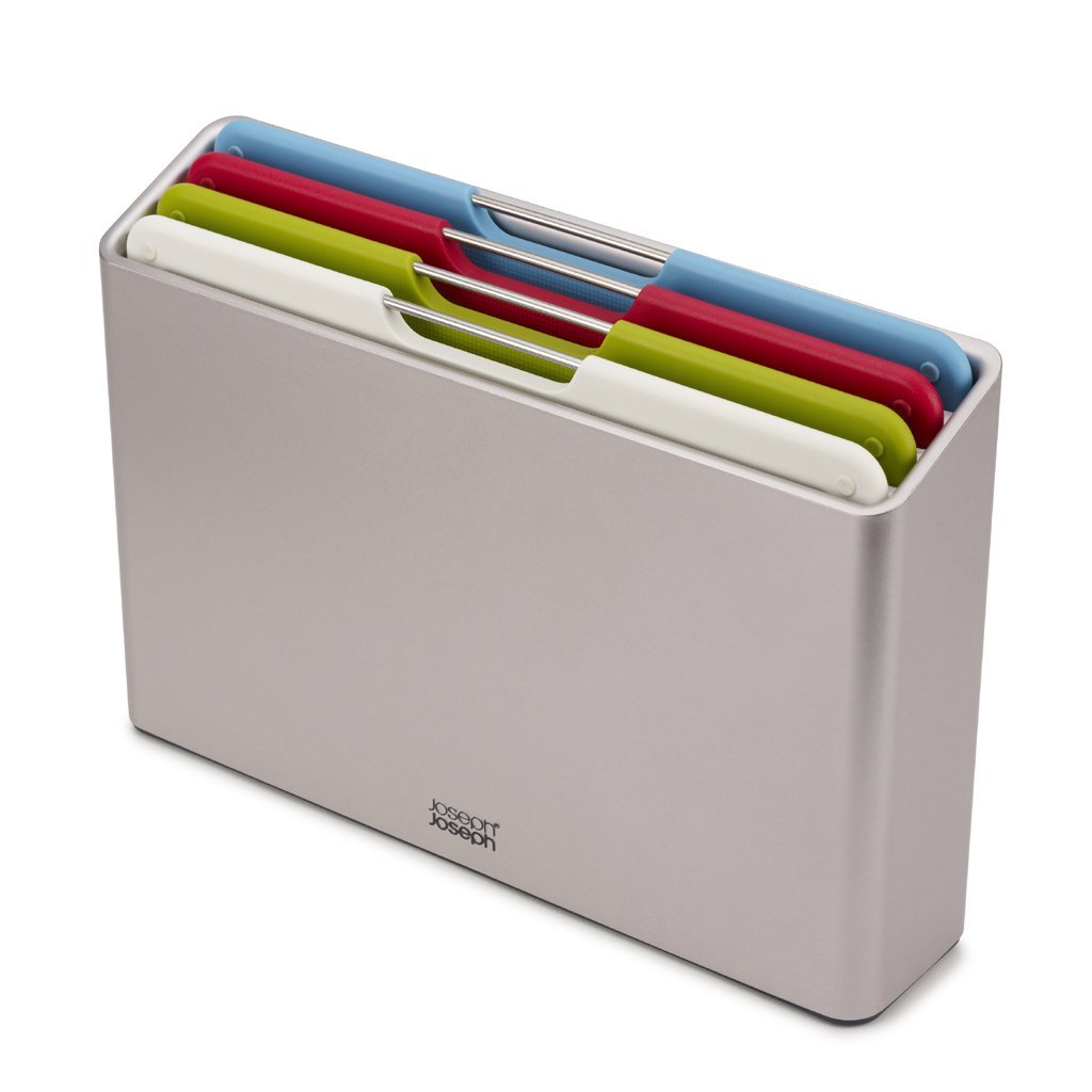 Tabla de cortar FOLIO, juego de 4 piezas, con soporte, plata, Joseph Joseph