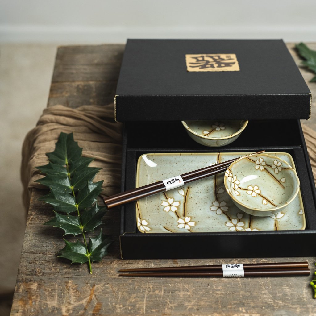 Juego de sushi GREY WITH WHITE PETALS 6 piezas, MIJ