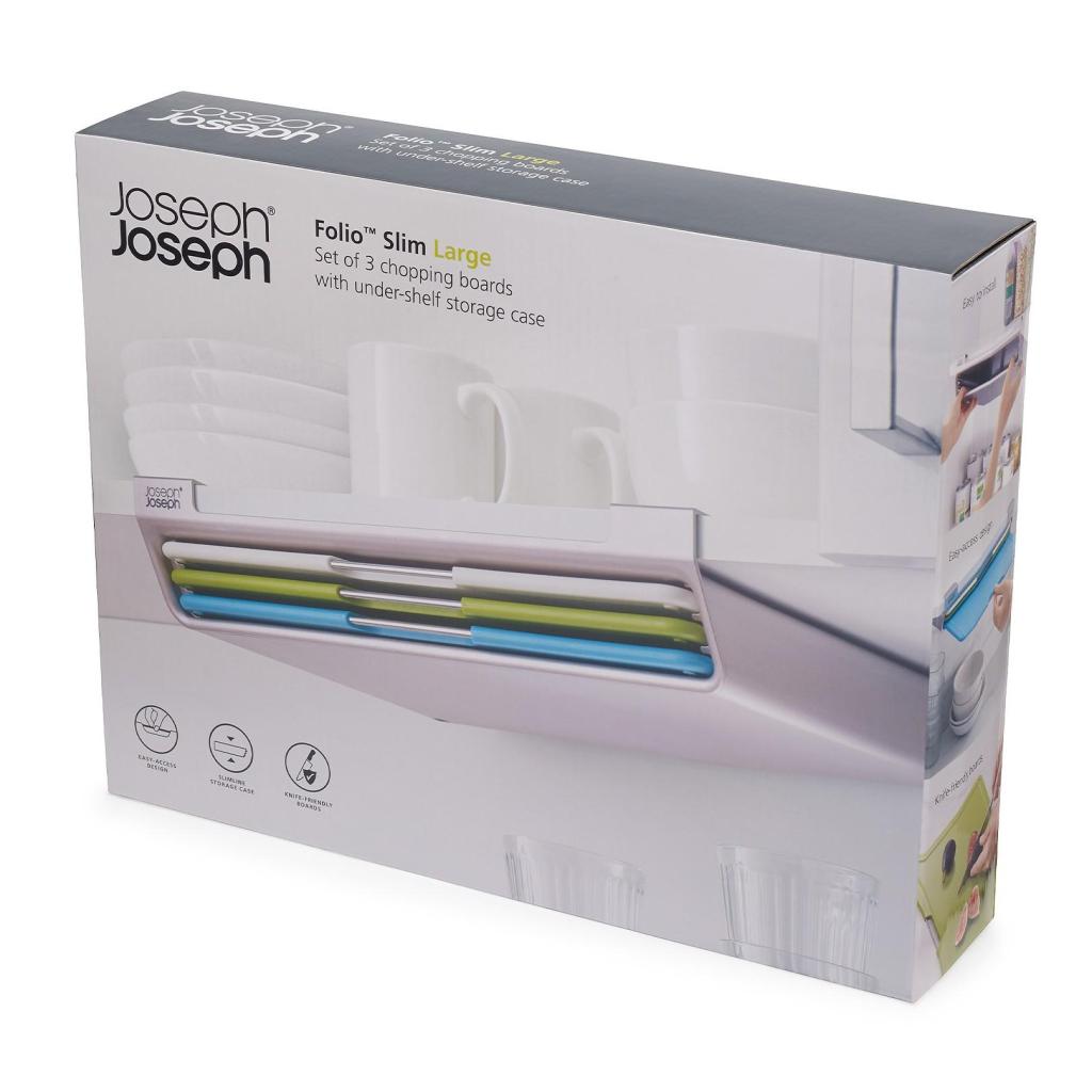 - La tabla de cortar Joseph Joseph FOLIO SLIM ofrece una solución práctica para la preparación de alimentos y permite guardar las tablas debajo del estante del armario de la cocina, manteniendo la encimera libre.