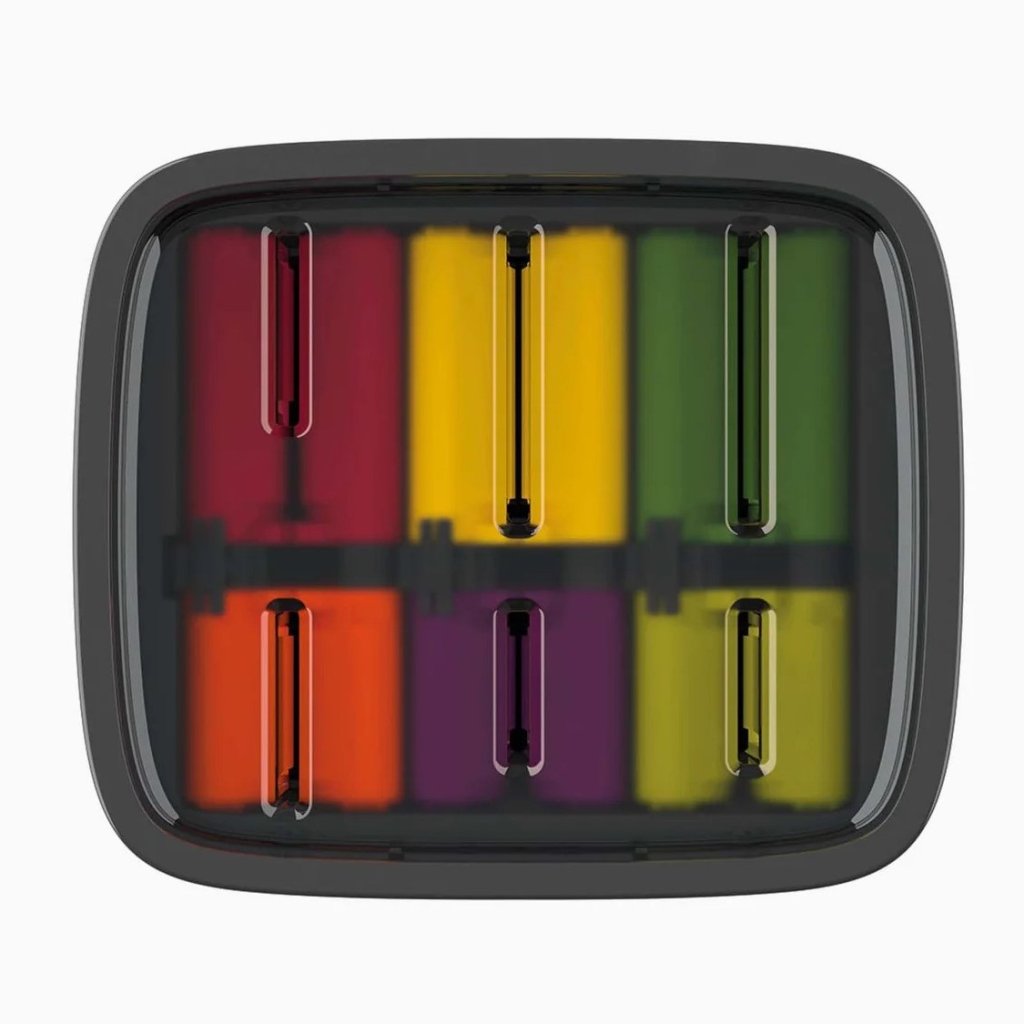 - los cuchillos están codificados por colores y sus colores corresponden a los colores del soporte