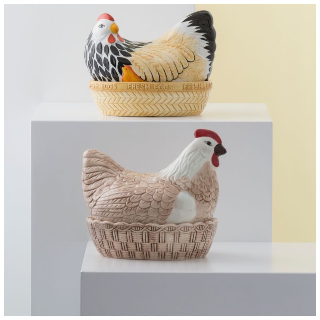- elegante cuenco con tapa en forma de gallina, colocado sobre un paño