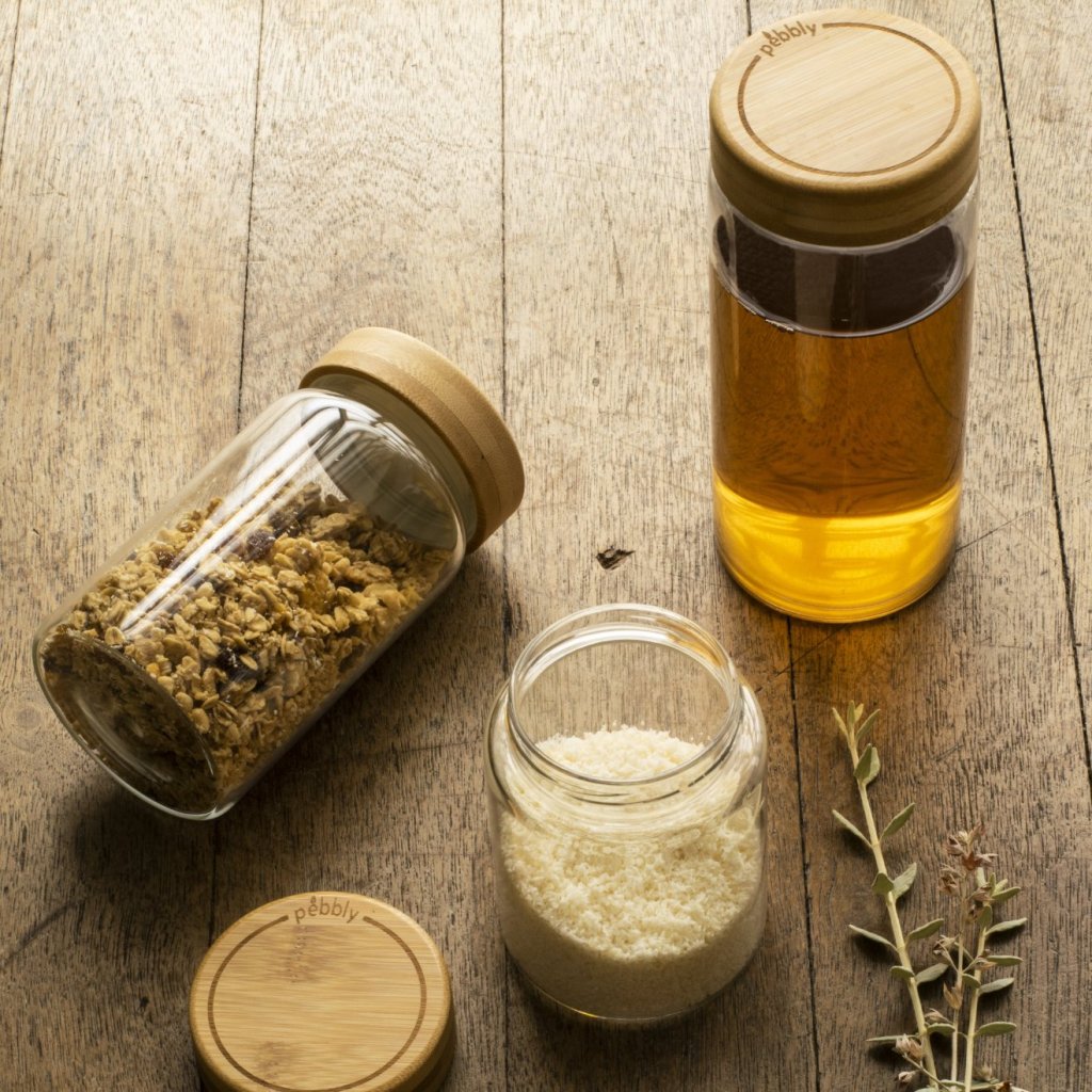Tarro de cocina PKV-028 850 ml, vidrio / bambú, Pebbly