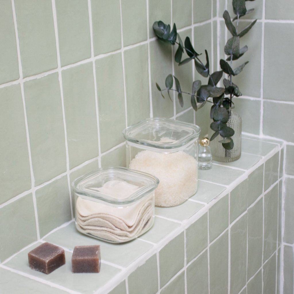 - tarro de vidrio borosilicato 100% con tapa cuadrada de cierre hermético