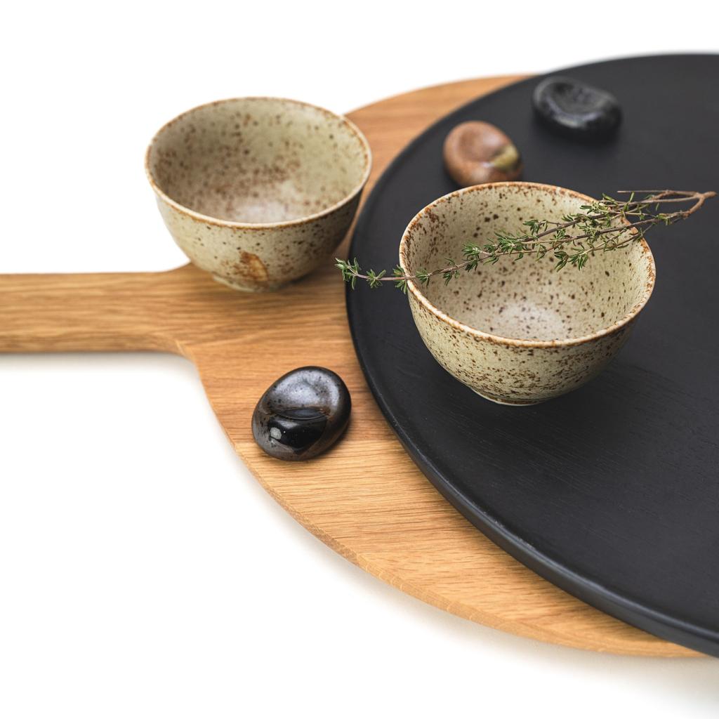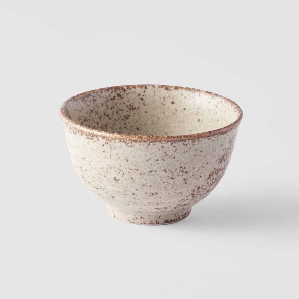 En este paquete encontrará la original taza de té sin orejas, de la colección Fade, con un diámetro de 9 cm. La taza tiene un color arena y una fina decoración marrón.