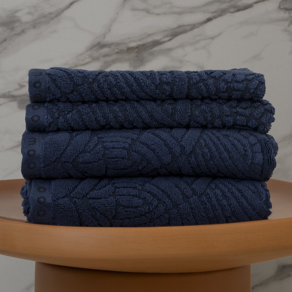 - azul oscuro toalla de manos / para invitados forma parte de la colección Extinct Animals, inspirada en animales extintos, en este caso las suaves plumas del pájaro Dodo