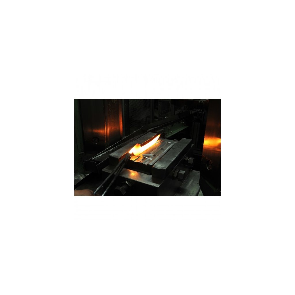 Para la producción de los cuchillos, se utilizó un acero especial para cuchillos de alta calidad con una dureza de aproximadamente 55 - 57 HRC según Rockwell, que es de grano fino, duro y menos susceptible a la corrosión. Además, gracias a su corte plano, es muy resistente a los daños o a las roturas, manteniendo una excelente capacidad de corte. Sus propiedades se mejoran aún más para la fabricación de cuchillos mediante el forjado, que homogeneiza y densifica su estructura.