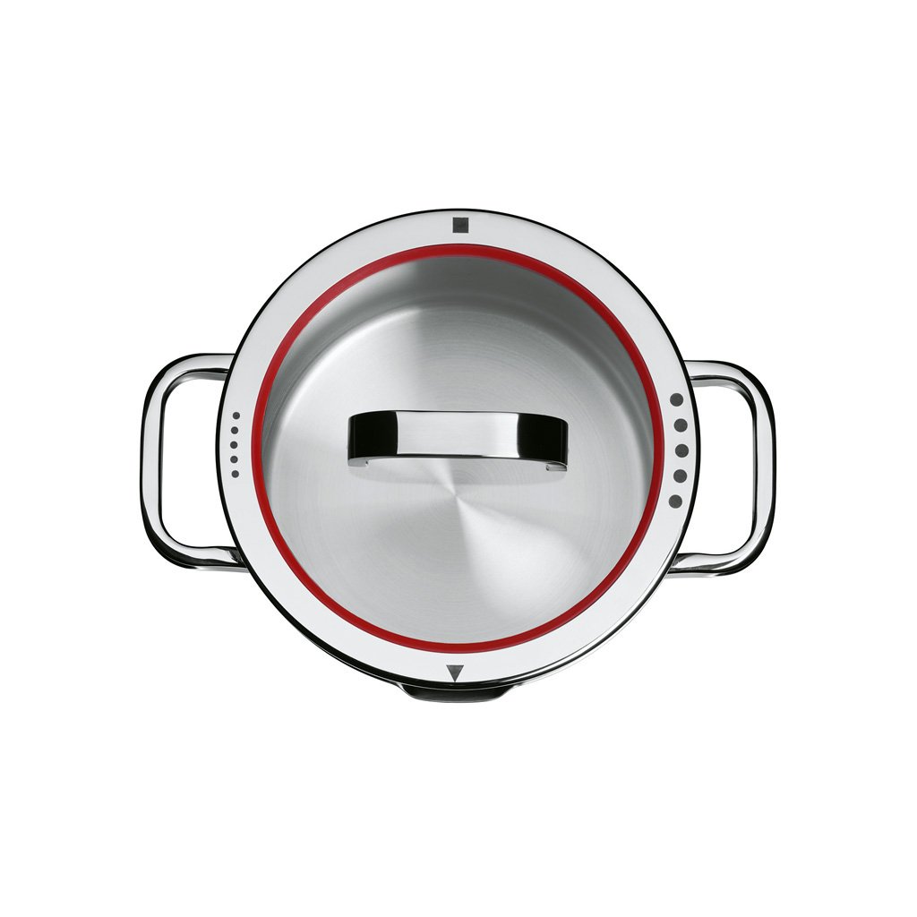 La batería de cocina Function 4 también cuenta con un amplio borde curvado para facilitar el vertido. De esta forma se evita el goteo indeseado o el escurrimiento del líquido por las paredes exteriores de la olla. Una escala de medición interna facilita la medición de la cantidad óptima de líquido. Las ollas son fáciles de limpiar y, por supuesto, pueden lavarse en el lavavajillas.