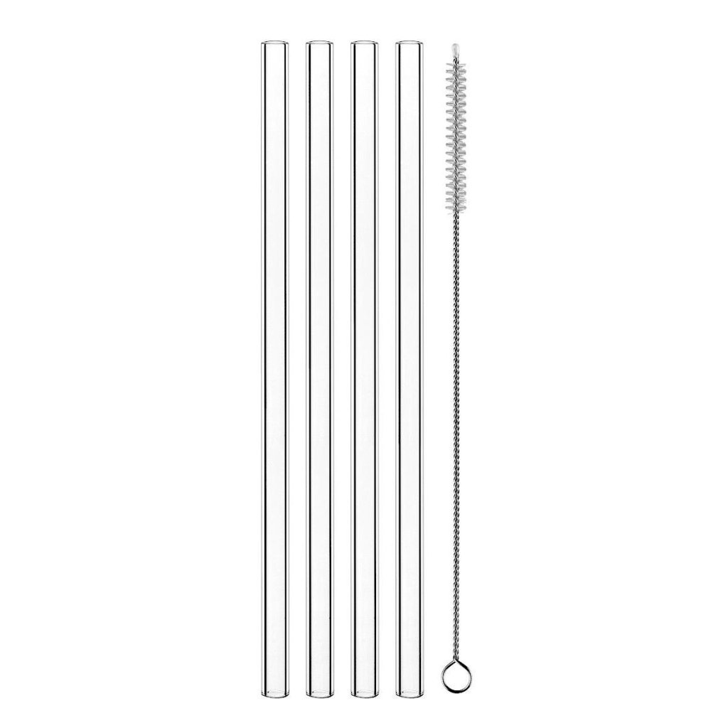 - El juego de 4 vasos largos y cuatro pajitas de cristal es una solución moderna para servir agua, zumos, limonadas y bebidas clásicas con estilo en días informales y ocasiones sociales.